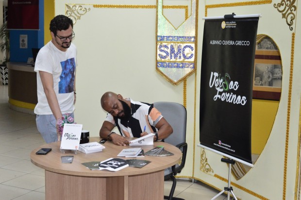 Declamações e bate-papo marcaram o lançamento de “Versos Ferinos 3”, do Albinno Oliveira Grecco. O ator, dramaturgo e poeta lançou a parte 3 da sua primeira trilogia, no dia 31 de março (sexta-feira), às 18h30, na Biblioteca Municipal Raul de Leoni, em Volta Redonda. O evento abriu a quinta temporada do Noites de Autógrafos. A obra saiu pela RH Soluções Artísticas e traz 50 poemas seguindo a linha de abordagem da rede social Versos Ferinos, que foi criada há seis anos. O livro custa R$ 40.