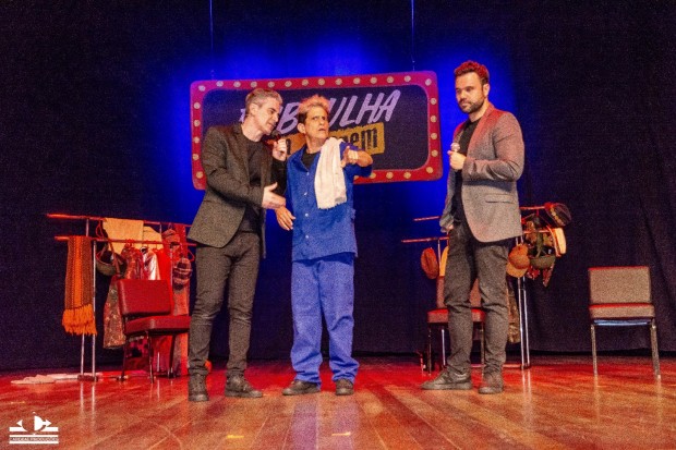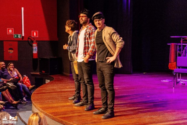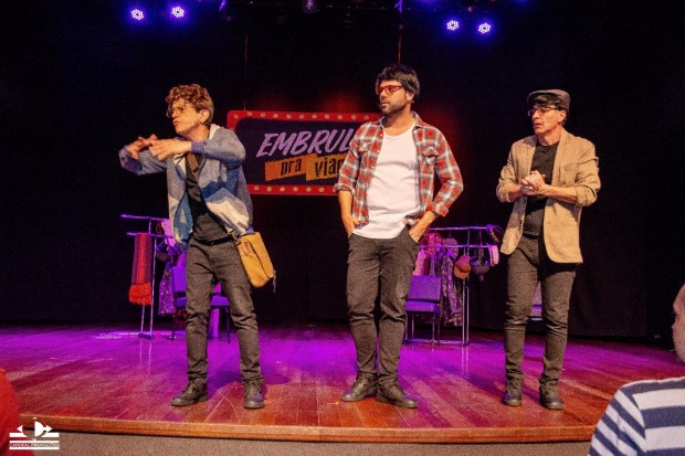 O que começou com vídeos curtos e virais, tomou o palco de Volta Redonda de assalto. Casa cheia, gargalhadas em coro e fãs empolgados marcaram a apresentação de estreia do espetáculo “Embrulha pra Viagem” no interior do Rio, na noite de sábado (23 de agosto). O trio Marcelo Laham, Maurício de Barros e Willians Mezzacapa comprovou que o humor que faz sucesso nas redes também tem força (e fôlego) ao vivo.