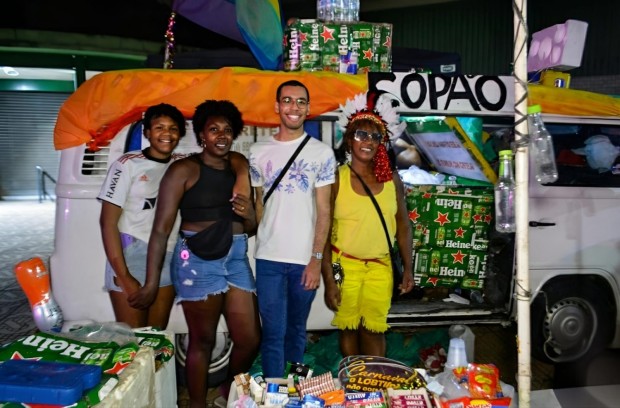 A estrutura acompanhou o ritmo da folia. Bares e ambulantes se espalharam pelo entorno, garantindo bebida e alimentação para quem passou a tarde no Aterrado. As opções de pagamento incluíam Pix, cartão e dinheiro, facilitando a vida de foliões e comerciantes.