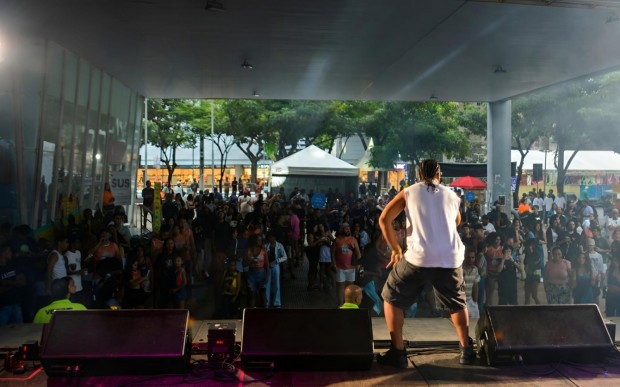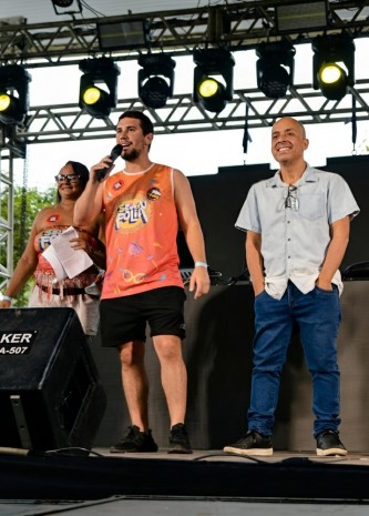 Quatro atrações conduziram a festa. O DJ, cantor, compositor e produtor musical Hitmaker levou ao palco sua mistura de batidas e presença de pista. Caio no Pagode puxou o repertório para o samba e o pagode que o público canta junto. O rapper TH6 trouxe rimas e discurso direto, dialogando com a plateia mais jovem. O DJ Gustavo Peixoto manteve o clima lá em cima, costurando os ritmos que embalaram a tarde.