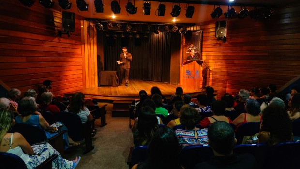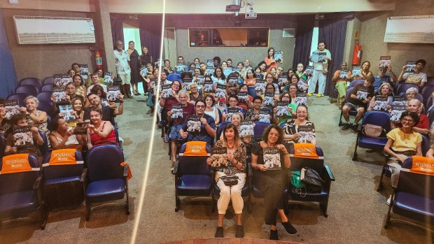 Aconteceu em 28 de março, no Teatro Gacemss 2, em Volta Redonda, o VIII Sarau ConVerso, uma realização da PoeArt Editora que abre as comemorações dos seus 20 anos de atividades literárias com esse evento que fomentou arte e ação social. Com apresentação deste colunista, juntamente com o poeta Guilherme Tadeu, o público teve muita música boa com o talentoso cantor Abner Costa, participação teatral em cenas impecáveis com o ator e professor de teatro Davi Procópio interpretando o performático personagem Piolho, que arrancou muitas gargalhadas, interagindo com a plateia. Mais de 20 poetas se apresentaram com seus poemas autorais que tocaram, emocionaram... Tendo como ponto alto a entrega da Homenagem à escritora Suzana Vargas (que veio do Rio de Janeiro), atual homenageada no livro “Vozes de Aço” volume 28, recente edição da PoeArt. No decorrer do evento, o artista visual Zaqueu Pedroza pintou uma bela tela que no final foi sorteada e a felizarda foi a professora e poeta Angela Crispim. O Lar Espírita Irmã Zilá (creche) foi a instituição beneficiada com os alimentos arrecadados. O nosso muito obrigado a todos os envolvidos, e até o IX Sarau ConVerso, que será em 27 de junho, também no Gacemss 2.
