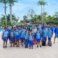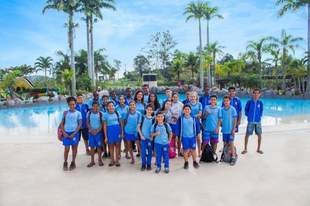 Alunos receberam instruções de como plantar e preservar o meio ambiente, depois lancharam e se divertiram nas atrações do Aldeia das Águas Park Resort